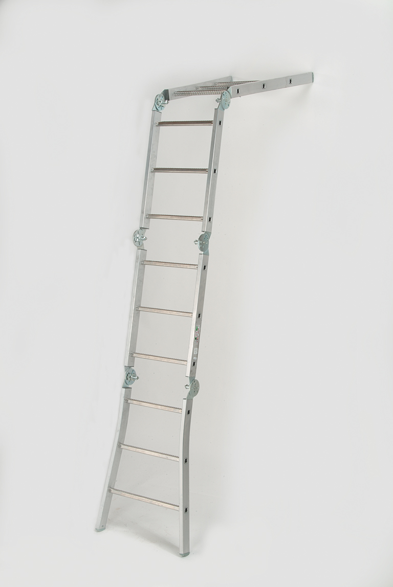Echelle pliable pour un rangement facile. Contrôle visuel du verrouillage des charnières.